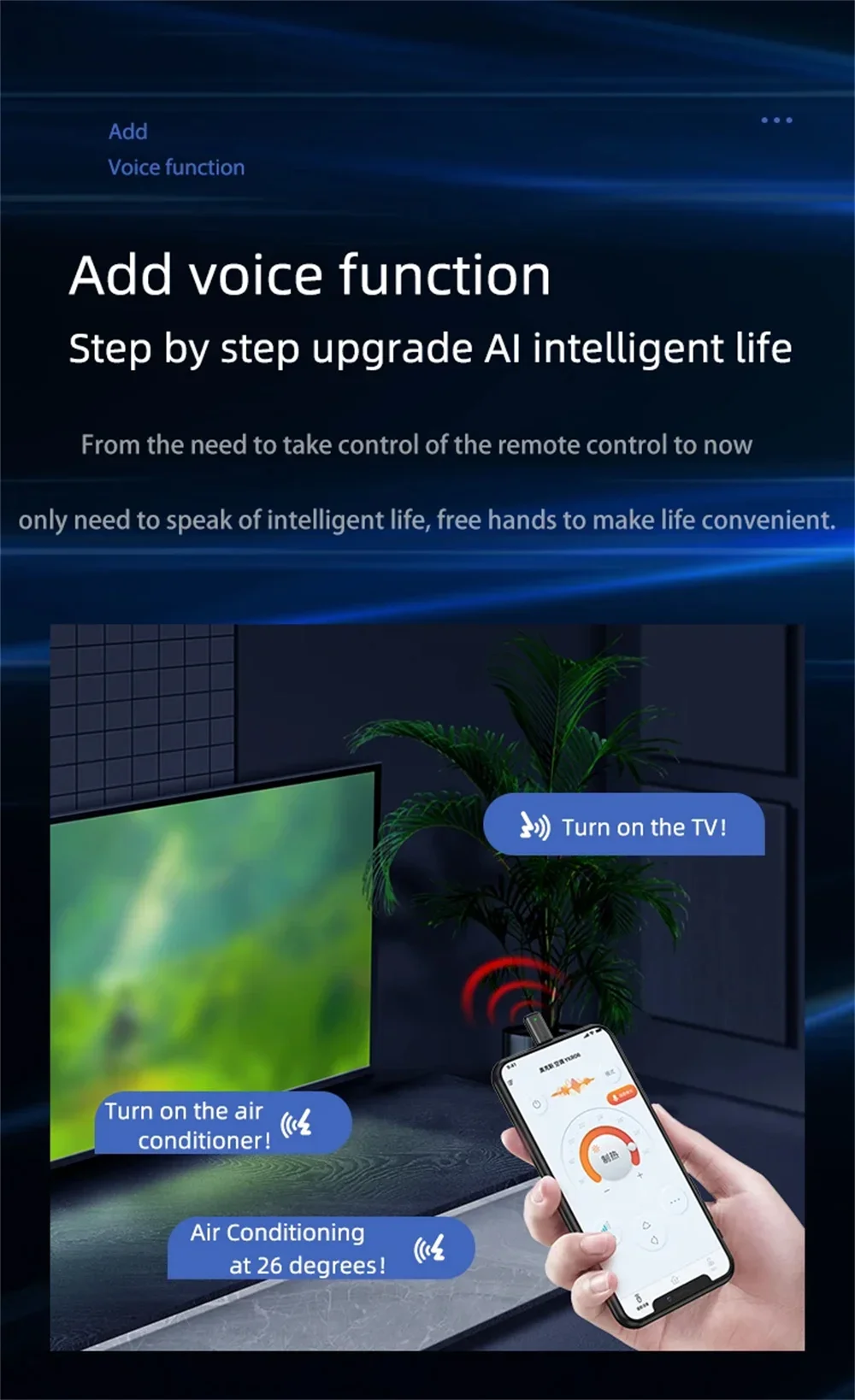 Answer: The distance from the remote control to the machine depends on the reception of the electrical appliances. The actual measurement of commonly used household appliances is 8-15 meters. Completely meet daily needs.